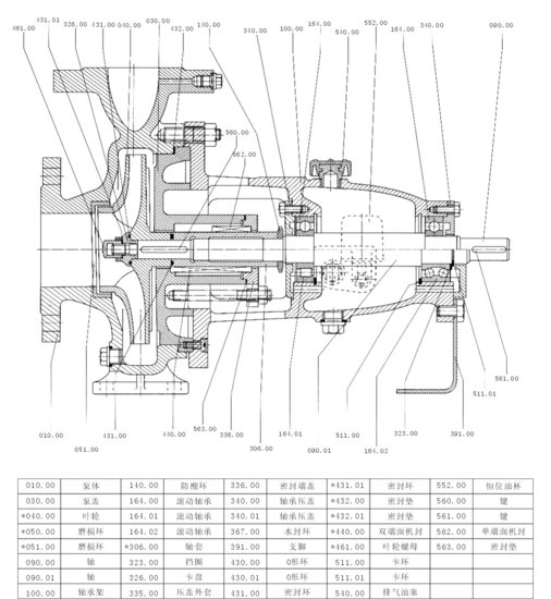 用戶可根據(jù)被輸送介質(zhì)的腐蝕性程度對泵的過流部分主要零件選用不同材質(zhì)。泵的過流部分主要零件的材料及其代號如下: