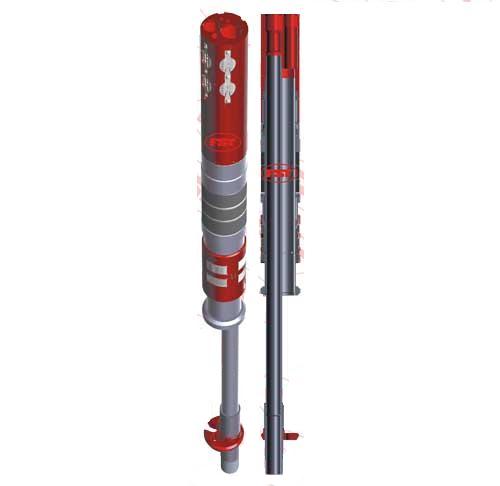 工作原理當油水混合物在油層中通過套管進入油套環(huán)空后,經(jīng)電潛泵2提壓直接進入水力旋流器,經(jīng)過水力旋流器分離后,濃縮油液通過旋流器的溢流口、旁通管進入電潛泵1,再由電潛泵1將油液舉升到地面。