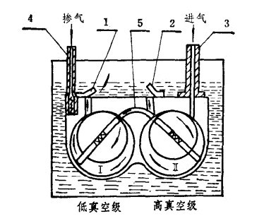 1.低真空級(jí)排氣閥2.高真空級(jí)排氣閥3.進(jìn)氣管4.摻氣閥5.中間通道