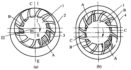 (a)單作用式液環(huán)泵;(b)雙作用式液環(huán)泵